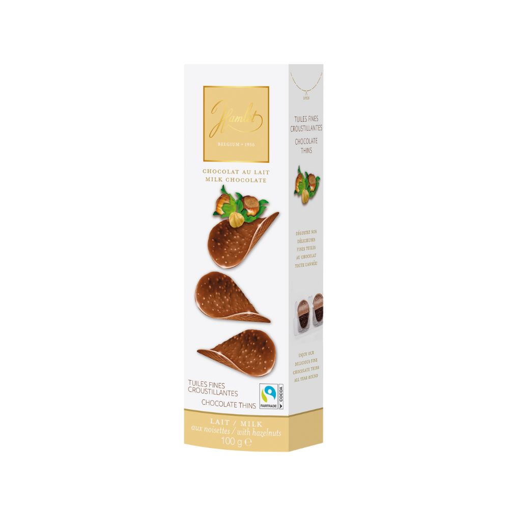 HAMLET CHOCOLATE THINS HAZELNUT (แฮมเล็ต ช็อกโกแลตแผ่น เฮเซลนัท) 100G