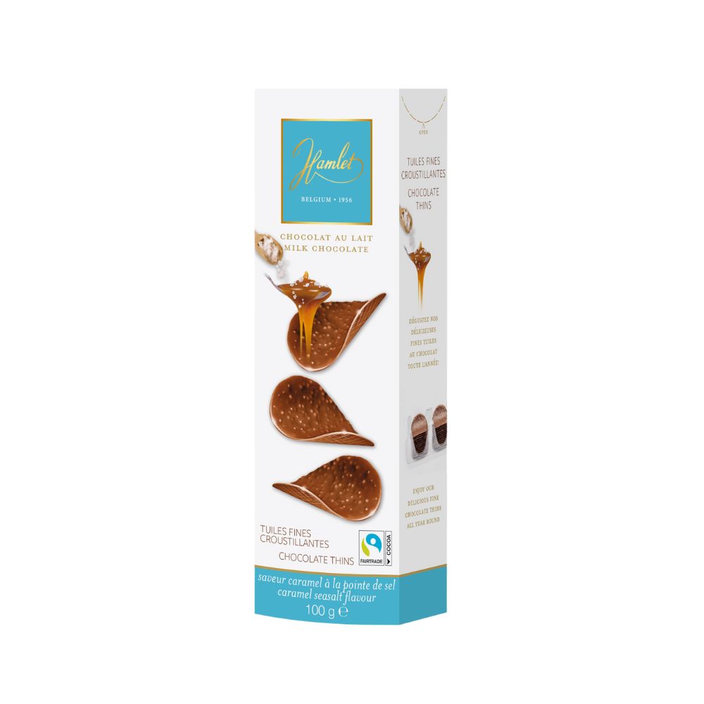 HAMLET CHOCOLATE THINS SALT CARAMEL (แฮมเล็ต ช็อกโกแลตแผ่น คาราเมล) 100G