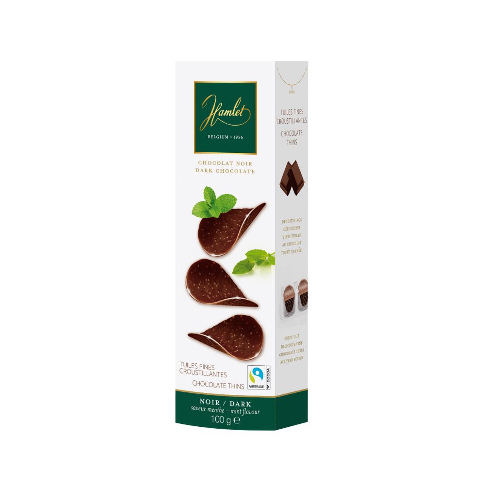 HAMLET CHOCOLATE THINS DARK-MINT (แฮมเล็ต ช็อกโกแลตแผ่น มิ้นท์) 100G