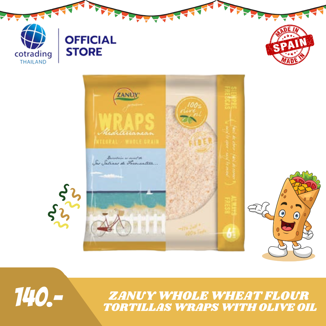 ZANUY Whole Wheat Flour Tortilla Wraps with Olive Oil (ซานุย แผ่นแป้งตอติญ่าสำเร็จรูป ผสมน้ำมันมะกอก) 240g